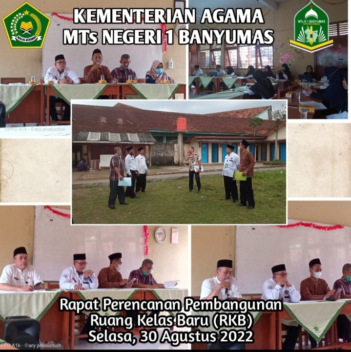 Proses pembelajaran akan berjalan lancar dan kondusif apabila sarana dan prasarana terpenuhi kelengkapannya, termasuk adanya ruang kelas yang nyaman, indah dan lengkap dengan sarana belajar. Mengingat ada beberapa ruang kelas yang perlu diperbaharui maka MTs Negeri 1 Banyumas membentuk panitia pembangunn RKB (Ruang Kelas Baru) dan mengadakan rapat perdana pada hari Selasa, 30 Agustus 2022.
