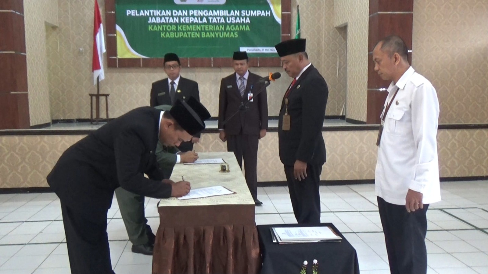 Purwokerto (Humas) –Kepala Kantor Kementerian Agama Kabupaten Banyumas Ibnu Asaddudin melantik dan mengambil sumpah pejabat baru Kepala Tata Usaha MAN 1 Banyumas Patiman, SE serta melantik dan mengambil sumpah Taufik, S.Pd.I sebagai Kepala Tata Usaha di MTs Negeri 2 Banyumas. Pelantikan ini dilakukan di Aula Al Ikhlas Kantor Kementerian Agama Kabupaten Banyumas, Senin (27/05).