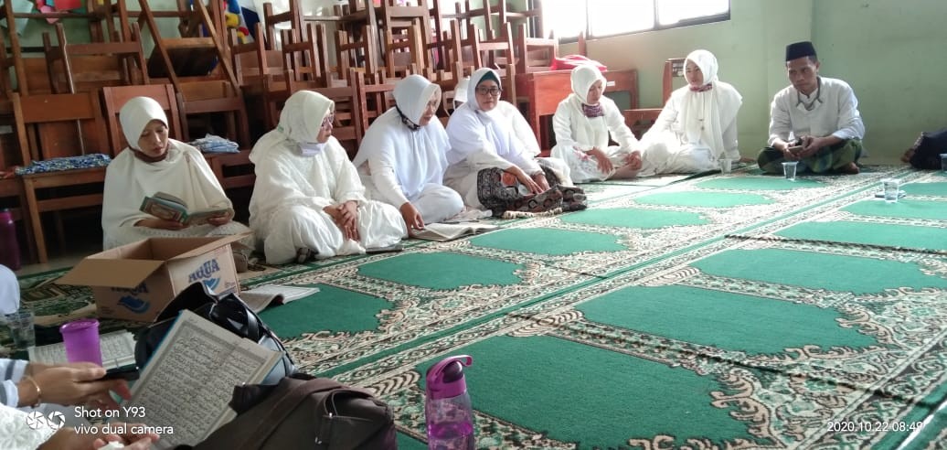 Purwokerto (30/01/21) - Usai melayat Ibu Warti bin Sanurji di Banjarsari Wetan Sumbang, Sabtu (30/1) yang merupakan Ibunda Kepala MIN 1 Banyumas Saridin, guru dan tenaga kependidikan MIN 1 Banyumas melanjutkan acara rutin khataman Al-Qur'an di madrasah.