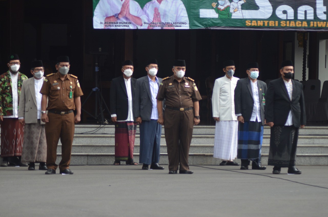 Upacara Hari Santri Nasional tingkat kabupaten Banyumas digelar di halaman Pendopo Si Panji dihadiri oleh Ketua DPRD Banyumas, Kepala Kantor Kemenag Banyumas, Dandim 0701 Banyumas, Kapolresta Banyumas, Kepala Kejaksaan Negeri Purwokerto, Kepala Pengadilan Negeri Purwokerto, ulama serta jajaran Forkompinda Banyumas dan pejabat yang diundang lainnya, hadir sebagai peserta upacara dari unsur TNI, Polri, perwakilan Santri dan ormas keagamaan.