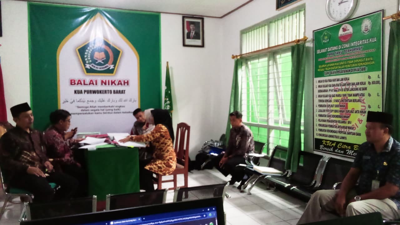 Kegiatan Monev yang dipimpin langsung oleh Kepala Seksi Bimas Islam Kemenag Banyumas, Agus Setiawan beserta tim ini bertujuan untuk memastikan pelaksanaan layanan pencatatan nikah dan rujuk di KUA Purwokerto Barat berjalan sesuai regulasi, akuntabel, dan mengutamakan pelayanan prima kepada masyarakat.
