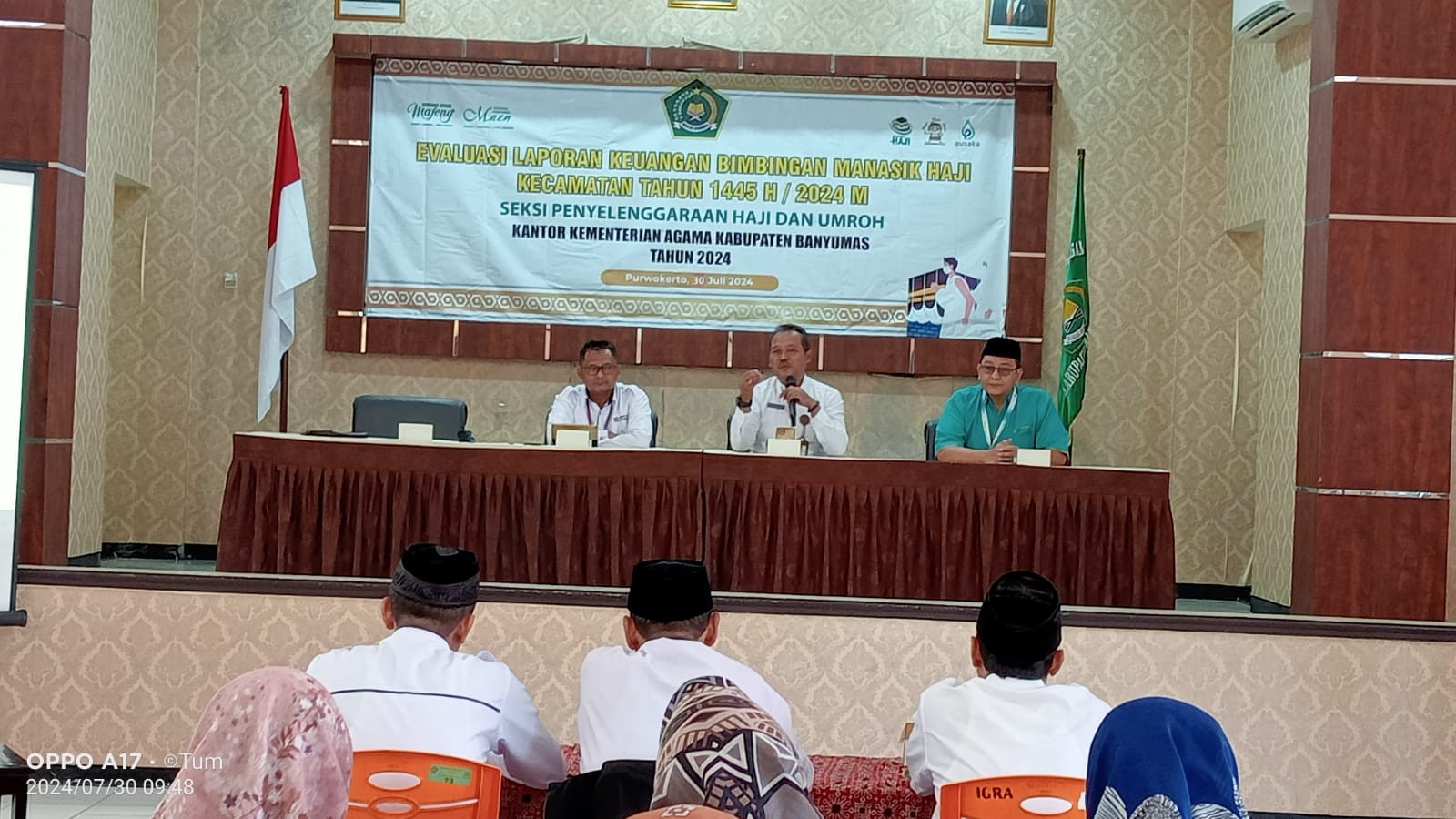 Purwokerto (Humas)- Seksi Pengelolaan Haji dan Umrah (PHU) Kantor Kementerian Agama (Kemenag) Banyumas mengadakan acara evaluasi laporan keuangan Bimbingan Manasik Haji Kecamatan tahun 1445 H / 2024 M di Aula Al Ikhlas Kantor Kemenag Banyumas pada Senin, 30 Juli 2024.