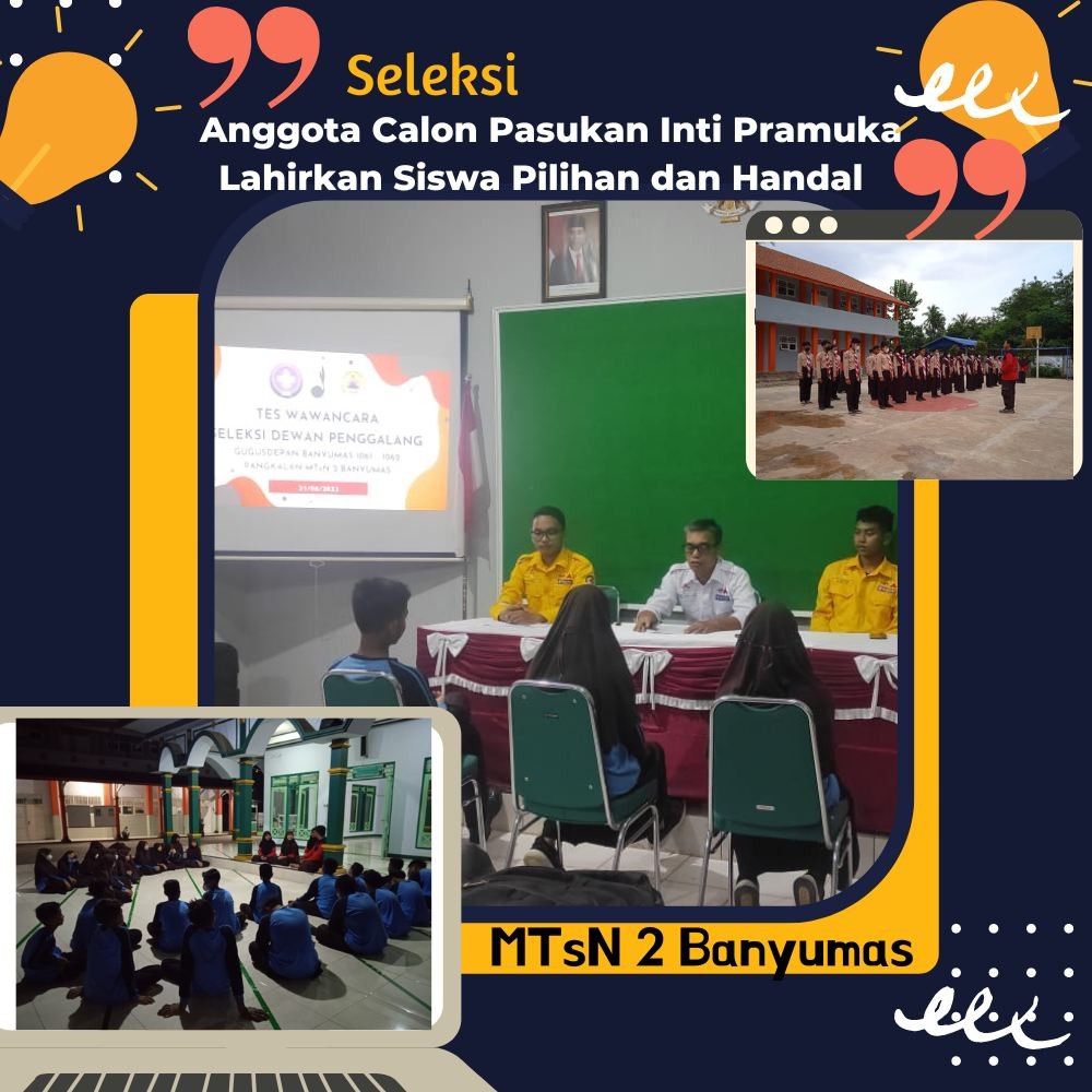 Sementara di tempat terpisah Atik Restusari selaku Kepala Madrasah berharap dengan adanya kegiatan seleksi tersebut akan terpilih calon pasukan inti Pramuka MTsN 2 Banyumas. "Semoga para siswa yang terseleksi memang benar-benar yang terbaik dan memiliki kemampuan lebih sehingga nantinya dapat mengikuti event-event kepramukaan di madrasah maupun di luar madrasah serta mampu mengharumkan nama madrasah", pungkas Atik.