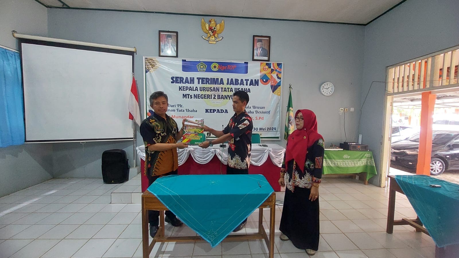 Banyumas (Humas) - Kamis (30/05/24) MTs Negeri 2 Banyumas mengadakan acara serah terima jabatan Kepala Urusan Tata Usaha dari Pejabat Pelaksana Tugas (Plt) Aris Munandar kepada Kepala Urusan Tata Usaha definitif. Acara tersebut berlangsung dengan khidmat di ruang rapat madrasah, yang dihadiri oleh berbagai pihak terkait, termasuk Komite MTs Negeri 2 Banyumas, Kepala MTs Negeri 2 Banyumas, Kepala MAN 1 Banyumas beserta guru dan karyawan MAN 1 dan MTsN 2 Banyumas.
