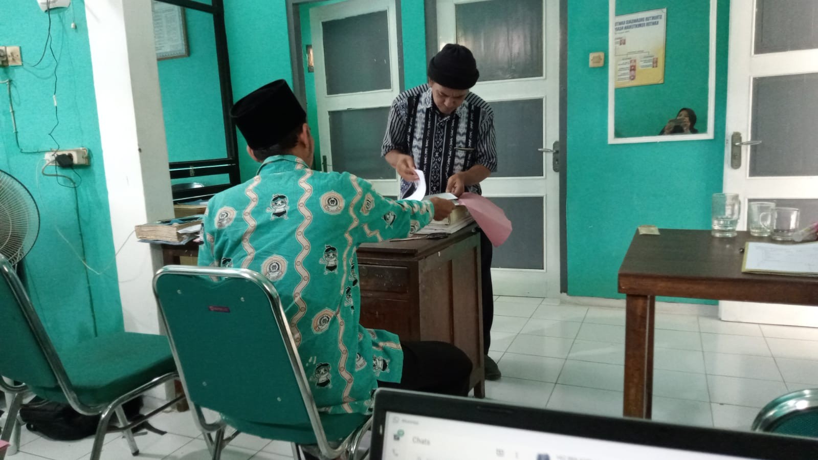 Staf Pelayanan KUA Sumpiuh, Solehun, secara langsung menerima kehadiran Waryanto, selaku Petugas Pembantu Pencatat Nikah (P3N) Desa Ketanda. Kedatangan beliau bertujuan untuk menyerahkan berkas pendaftaran nikah milik salah satu warga Ketanda yang direncanakan akan melangsungkan pernikahan dalam waktu dekat.
