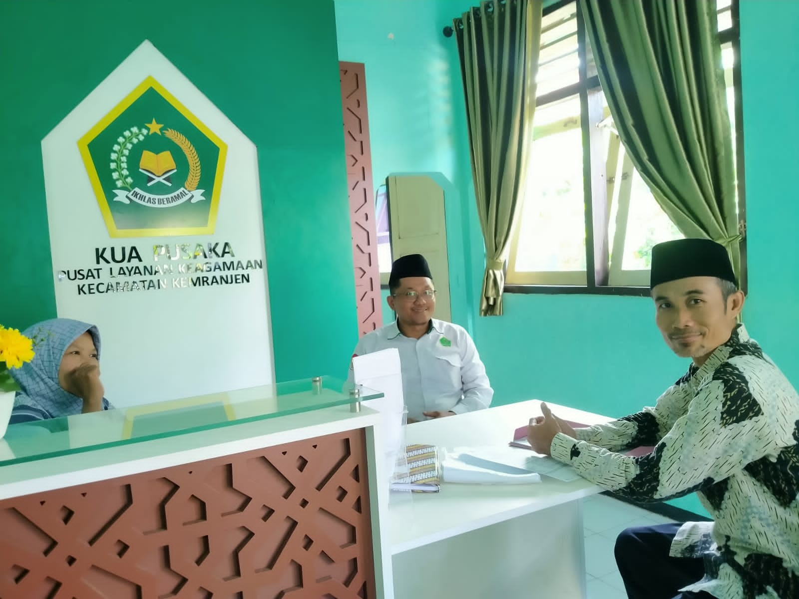 Kemranjen - Sekretaris Desa Grujugan, Ali Surahman, melakukan silaturahim ke Kantor Urusan Agama (KUA) Kemranjen untuk sharing dan berdiskusi mengenai mekanisme pencatatan pernikahan, perwakafan, serta tugas dan fungsi KUA secara umum. (25/11)