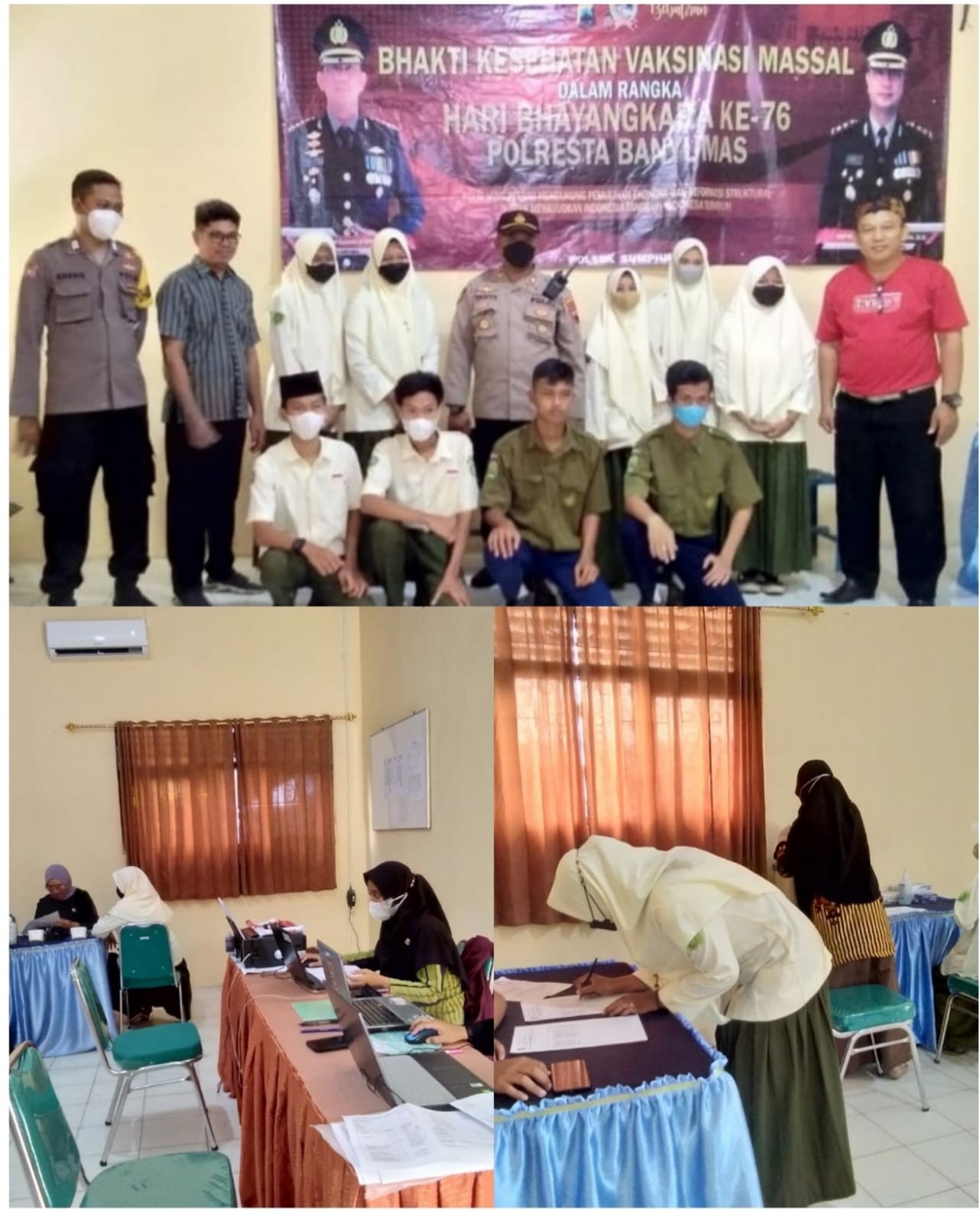 Banyumas—Sebanyak 10 siswa MAN 3 Banyumas yang telah memenuhi persyaratan mengikuti vaksinasi Booster pada Kamis (16/6). Kesepuluh siswa tersebut merupakan siswa kelas XI, yang terdiri atas 5 siswa dari kelas XI Agama, 1 siswa dari kelas XI IPA 2, 2 siswa dari kelas XI IPA 3, dan 2 siswa dari kelas XI IPS 2. Kegiatan tersebut berdasarkan surat dari Puskesmas 1 Sumpiuh Nomor 440/303/VI/2022 perihal Pelaksanaan Vaksinasi Dosis 3 (Booster) dalam rangka Percepatan Program Vaksinasi Covid-19 dan Hari Bhayangkara, kerja sama antara Puskesmas 1 Sumpiuh dengan Kepolisian Sektor Sumpiuh. Kegiatan dilaksanakan di SMK Muhammadiyah Sumpiuh mulai pukul 08.00 sampai dengan pukul 11.00.