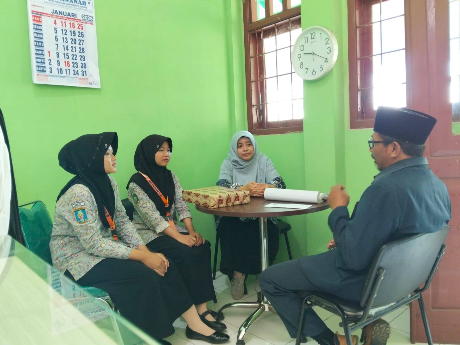 Banyumas – Kepala KUA Ajibarang, Mujamil, menerima kunjungan Venika Fifit Rokhani, SPdI, dari SMK Muhammadiyah I Ajibarang. Kunjungan ini bertujuan menarik dua siswa peserta Praktik Kerja Lapangan (PKL) tahap 2 yang telah menjalani magang di KUA sejak 20 Oktober 2025. Kamis (29/01/26)