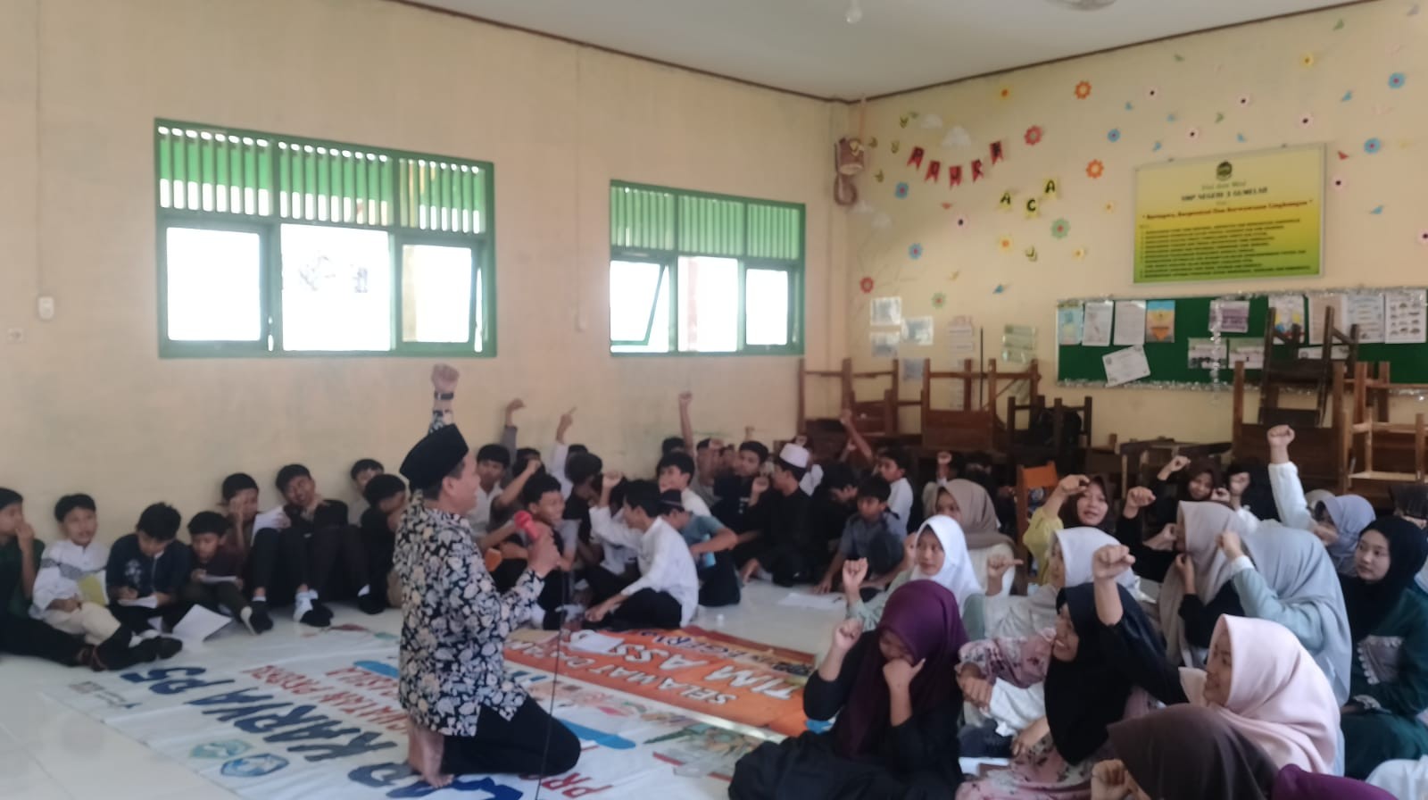 Kegiatan yang berlangsung interaktif di ruang kelas 8 ini menghadirkan narasumber ahli, Warto Amirudin, yang merupakan Penyuluh Agama dari KUA Gumelar.
