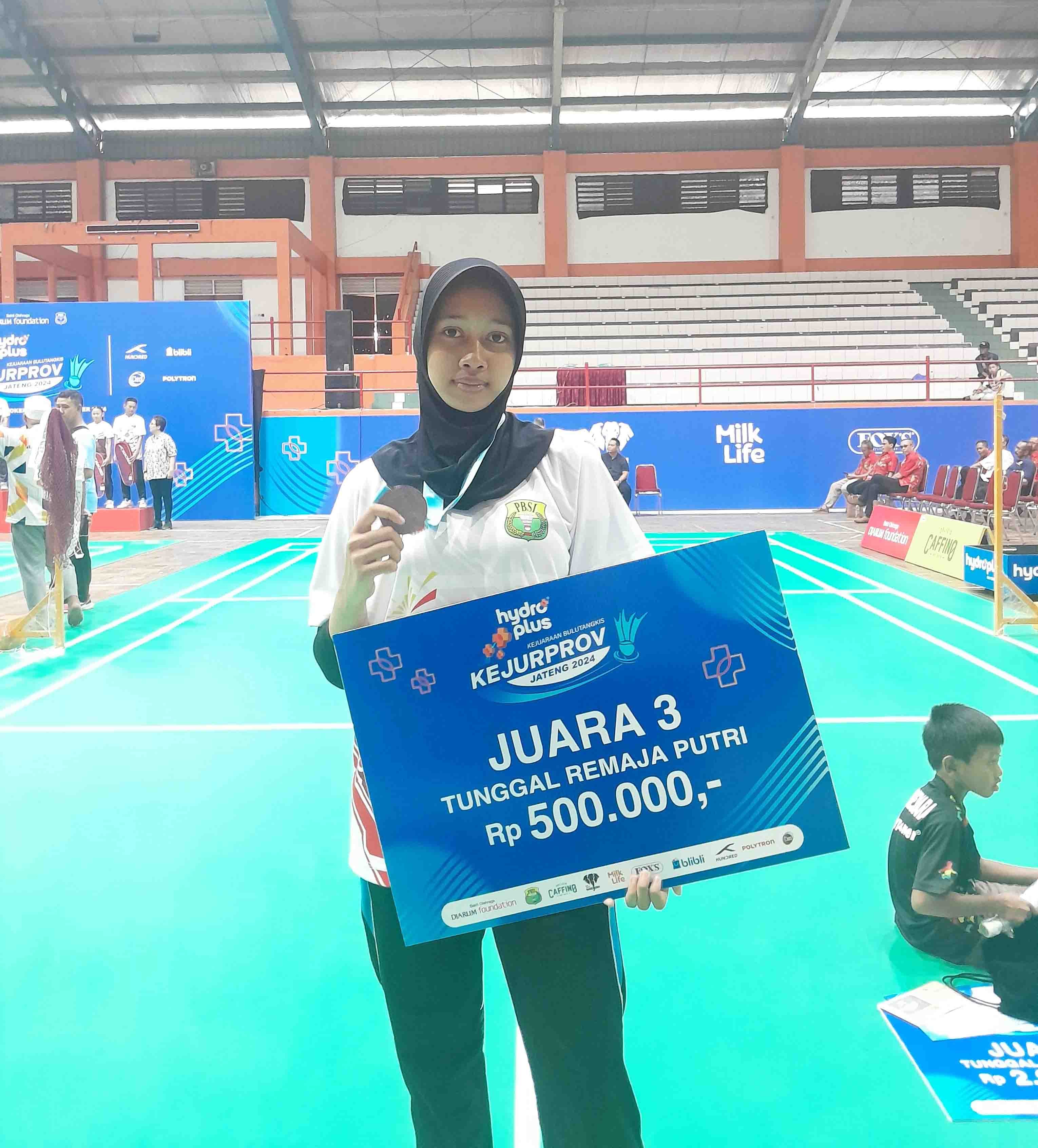 Humas MAN 1 Banyumas, - Ananda Syifa Meilani Nurjanah, siswa kelas X 12 Kelas Khusus Olahraga (KKO) MAN 1 Banyumas, menorehkan prestasi gemilang di ajang Kejuaraan Kejurprov Bulutangkis 2024. Syifa berhasil meraih juara 3 pada kategori TRI (Tunggal Remaja Putri) sebuah pencapaian yang mengukuhkan posisinya sebagai salah satu atlet bulutangkis terbaik di kabupaten Banyumas.