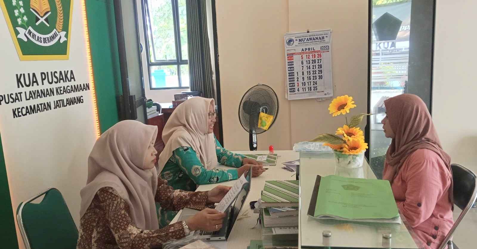 Di balik meja pelayanan, Muji Rahayu, staf KUA Jatilawang, menyambut dengan senyum yang menenangkan. Ia mendengarkan dengan penuh perhatian ketika warga tersebut mengutarakan persoalan mengenai perbedaan alamat antara wali dan calon pengantin—sebuah hal yang kerap dianggap sepele, namun dapat menjadi hambatan jika tidak dipahami dengan tepat.