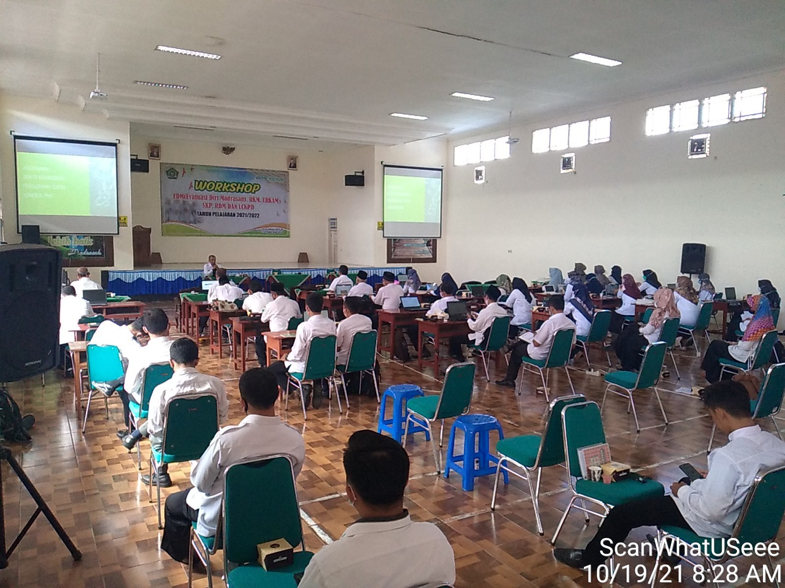 Workhshop dilaksanakan dalam dua hari, hari pertama senin, 18 Oktober 2021 dengan materi EDM, RKM, ERKAM oleh Pokjawas, H. Amin Yuhdi, S.PD. M.Pd.I. Hari kedua Selasa, 19 Oktober 2021 materi SKP, RDM, LCKP dengan pemateri dari Analis kepegawaian muda kantor kementerian agama Kabupaten Banyumas, Iwan Yuni Pramono, SH. Peserta workshop seluruh guru tenaga pendidik dan kependidikan, bertempat di aula madrasah.