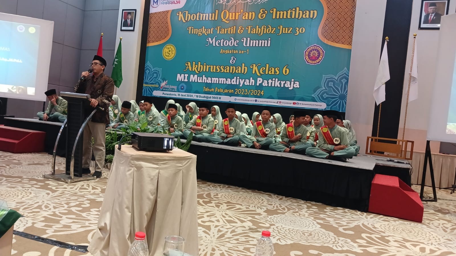 Kamini Kepala MI Muhammadiyah Patikraja mengatakan, “Khotmil Quran dan Imtihan tingkat tartil dan tahfidz juz 30 merupakan salah satu program unggulan selain program Billingual Class. Peserta didik yang mengikuti Khotmil Quran dan Imtihan ini sebanyak 42 siswa dari kelas 5 dan kelas 6,” ungkapnya.