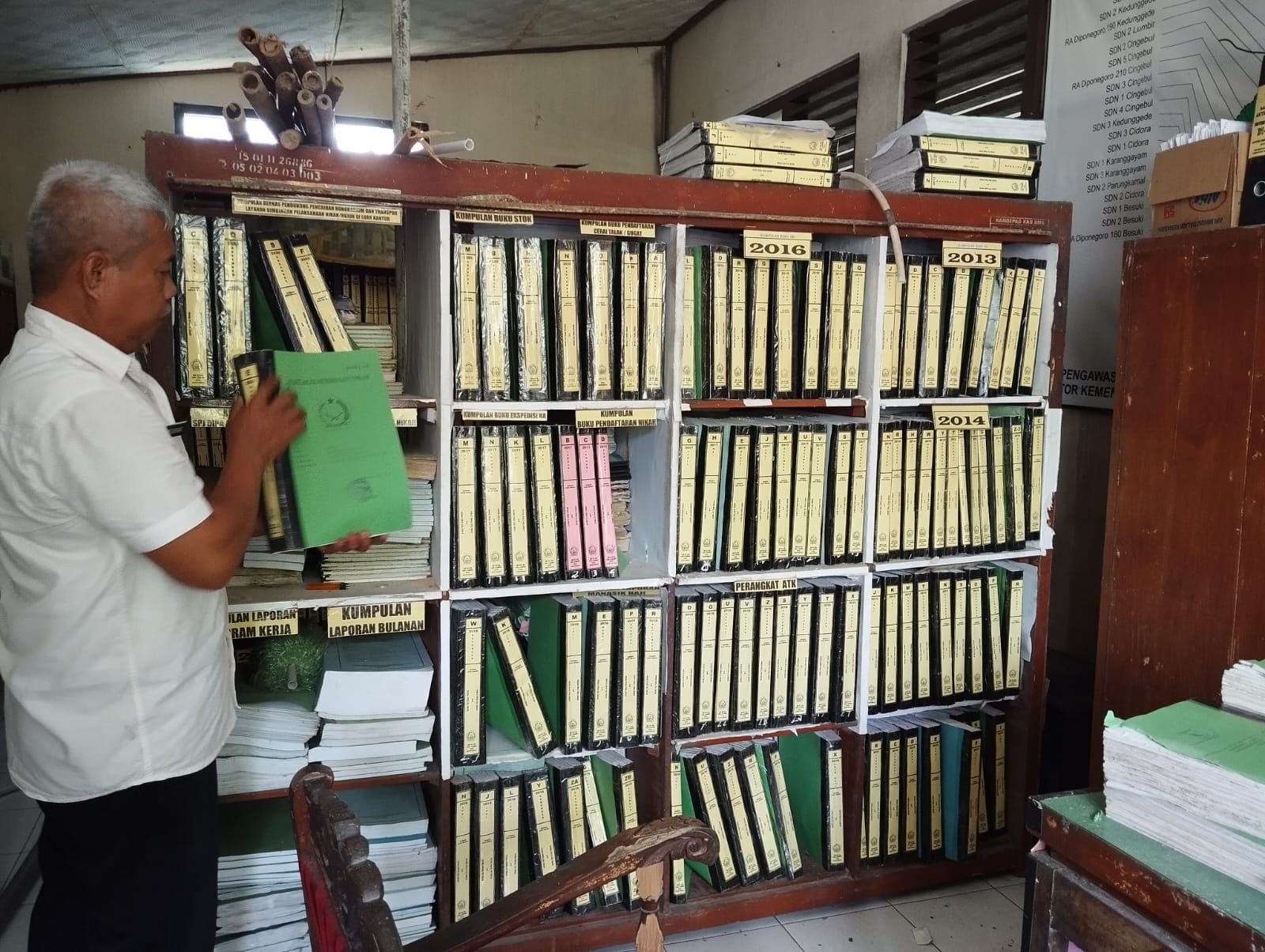 Banyumas — Dalam rangka memberikan pelayanan administrasi keagamaan yang tertib dan responsif, staf KUA Lumbir, Catur Prabowo, melaksanakan kegiatan perapian berkas pernikahan sekaligus membantu pencarian data duplikat pernikahan orang tua Hendra, warga Desa Dermaji. Data duplikat tersebut diperlukan sebagai salah satu syarat pembuatan akta kelahiran. Selasa (16/12)