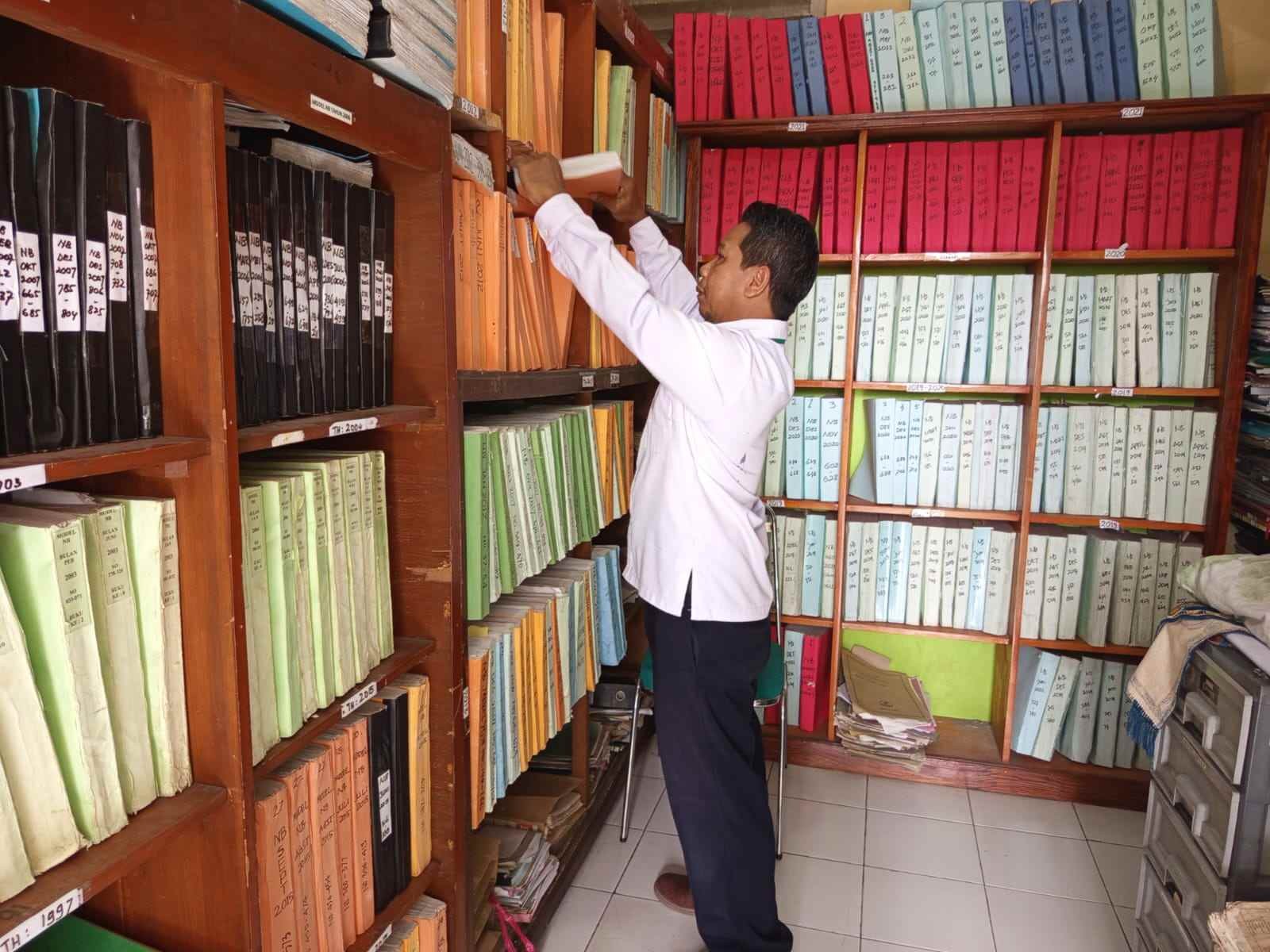 Staf KUA Sumbang Laksanakan Perapihan Arsip Data Pernikahan