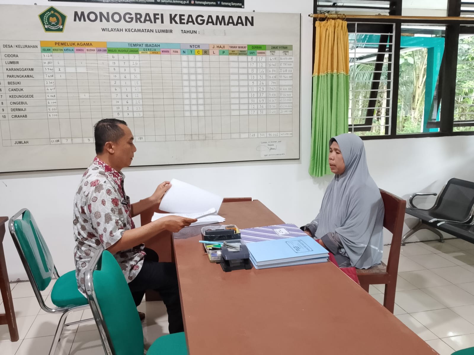 Melalui pelayanan seperti ini, KUA Lumbir terus meneguhkan komitmennya sebagai garda terdepan dalam pelayanan urusan keagamaan, khususnya di bidang pencatatan nikah. Dengan semangat profesionalitas dan dedikasi, setiap pegawai berupaya menghadirkan pelayanan yang cepat, tepat, dan akuntabel demi terwujudnya masyarakat yang tertib administrasi dan sakinah dalam membangun rumah tangga.