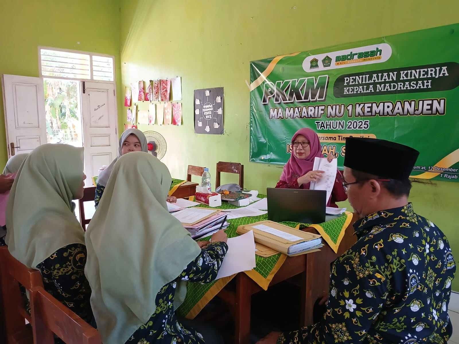 Banyumas – MA Ma'arif NU 1 Kemranjen melaksanakan Penilaian Kinerja Kepala Madrasah (PKKM) Tahunan. Kegiatan ini menjadi ajang evaluasi menyeluruh terhadap manajemen madrasah dan kinerja seluruh sumber daya manusia (SDM) yang ada. Jumat (12/12)