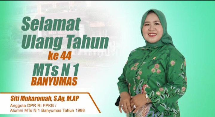 Siti Mukarromah, S.Ag, M.A.P. selaku anggota Komisi VI DPR-RI yang merupakan alumni MTs Negeri 1 Banyumas tahun 1988 ikut hadir dan memberikan motivasi pada HUT MTs Negeri 1 Banyumas yang ke-44 yang diselenggarakan pada hari Rabu, 16 Maret 2022 bertempat di Aula MTs Negeri 1 Banyumas yang diikuti oleh seluruh Bpk/Ibu Guru, Karyawan serta siswa.