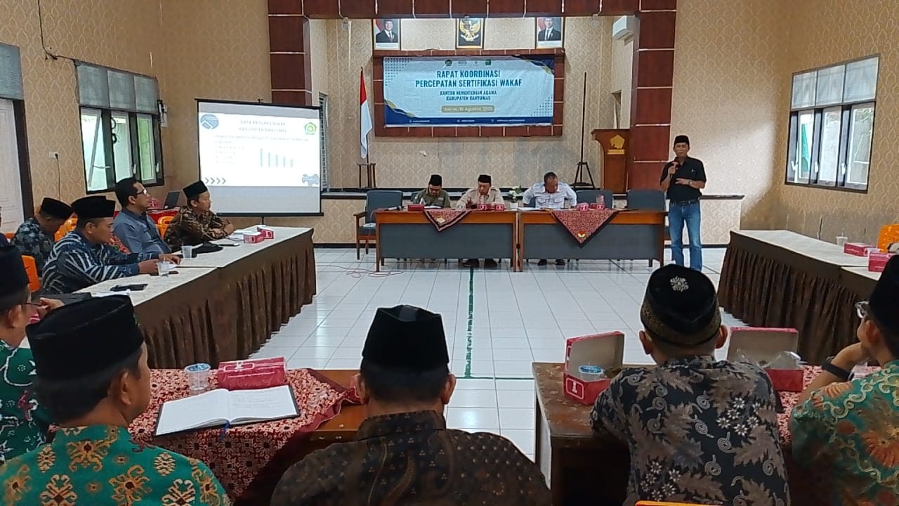 Purwokerto (Humas) – Badan Wakaf Indonesia (BWI) Kabupaten Banyumas menggelar Rapat Koordinasi (Rakor) percepatan sertifikasi tanah wakaf, Jumat (15/8). Kegiatan ini menjadi langkah strategis dalam upaya mengamankan dan memaksimalkan pemanfaatan aset wakaf di wilayah Banyumas.