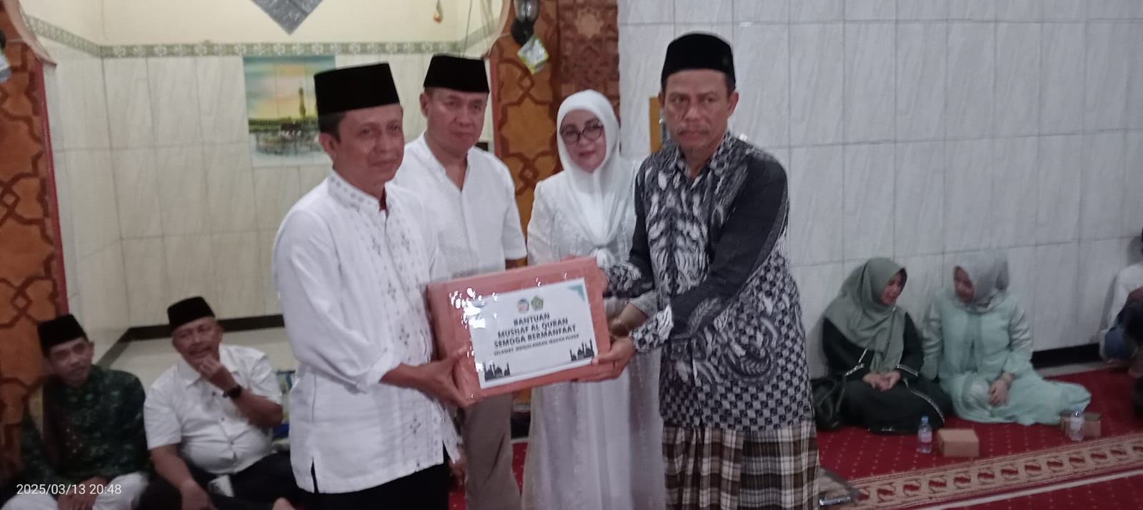Selain melaksanakan sholat Isya dan tarawih berjamaah, acara ini juga diisi dengan penyerahan bantuan berupa uang tunai, 25 paket sembako, dan 10 buah Al-Qur'an yang diserahkan kepada Takmir masjid dan masyarakat yang membutuhkan.