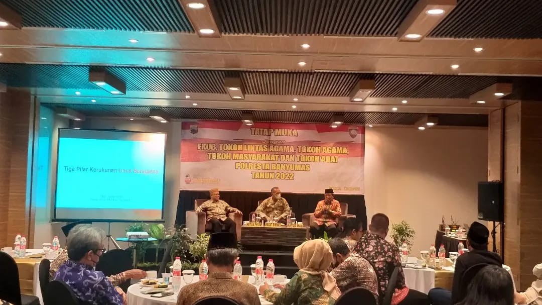 Sebanyak 50 peserta dari Forum Kerukunan Umat Beragama (FKUB) Kabupaten Banyumas, Tokoh masyarakat, Tokoh Adat, Tokoh Agama mengikuti kegiatan Tatap Muka yang diadakan oleh POLRESTA Banyumas di Hotel Java Heritage Purwokerto. Sabtu (19/11)