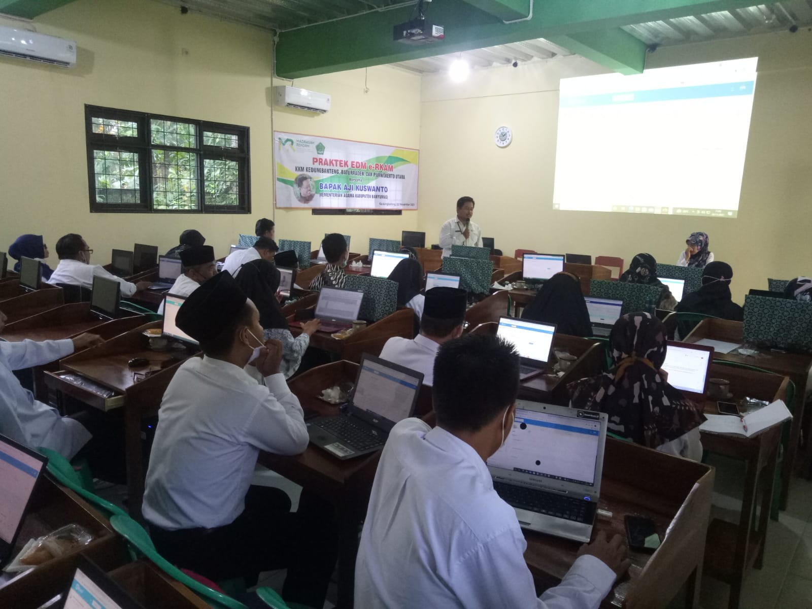 Praktek EDM eRKAM diikuti oleh 33 peserta dari unsur kepala madrasah, bendahara dan operator MA Al Iksan Beji, MTs. Manu 1 Kedungbanteng, MTs. Al Ikhsan Beji, MTs. Masruriyah Baturraden, MTs. Al Hidayah Purwokerto Utara, MI Ma'arif Kedungbanteng, MI Ma'arif Dawuhanwetan, MI Ma'arif Dawuhankulon, MI Ma'aruf Karangnangka, MI Ma'arif Beji, dan MI Muhammadiyah Beji yang dipandu oleh fasilitator eRKAM, Aji Kuswanto. "Alhamdulillah praktek EDM eRKAM sebagai tindak lanjut Bimtek ini berjalan lancar dan beberapa madrasah dapat menyelesaikan platform latihan", pungkas Yayah. (akw)