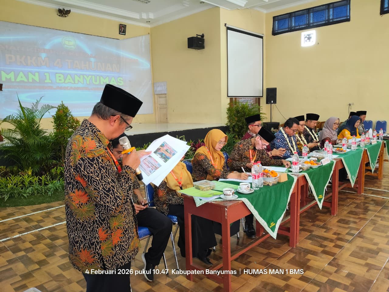 Purwokerto - MAN 1 Banyumas melaksanakan Penilaian Kinerja Kepala Madrasah (PKKM) empat tahunan yang dilaksanakan oleh tim penilai dari Kantor Wilayah Kementerian Agama Jawa Tengah. Kegiatan ini menjadi momen strategis untuk mengukur mutu kepemimpinan dan tata kelola madrasah dalam meningkatkan kualitas layanan pendidikan.