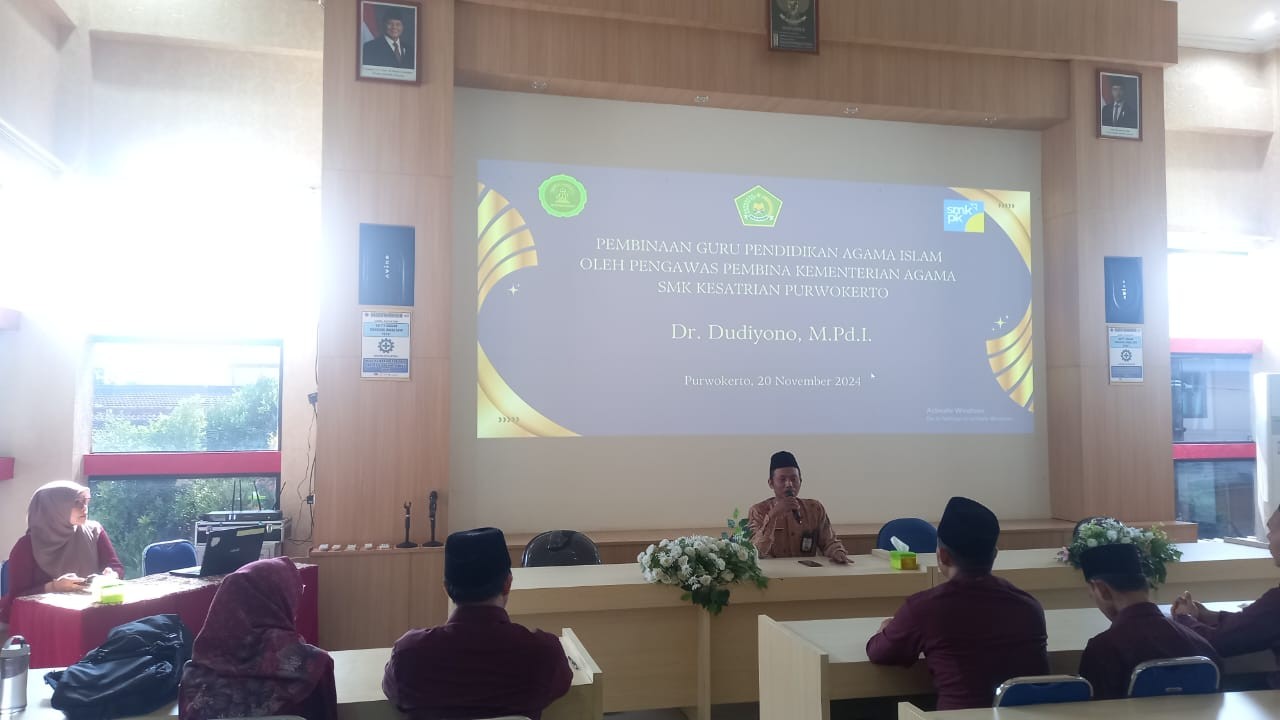 Purwokerto (Humas)SMK Kesatrian Purwokerto mengadakan kegiatan brain storming sekaligus pembinaan bagi Guru PAI yang dilaksanakan di Auditorium pada Rabu, 20/11. Sebagai narasumber kegiatan tersebut disampaikan oleh Dr. Dudiyono, M.Pd.I yang merupakan pengawas PAI Kantor Kementerian Agama Kabupaten Banyumas sekaligus sebagai Pengawas Binaan di SMK Kesatrian Purwokerto. Rabu (20/11)