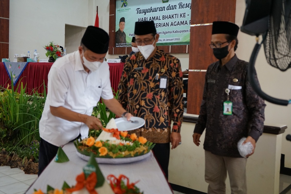 Pelaksanaan tasyakuran tersebut merupakan puncak dari rangkaian kegiatan Hari Amal Bakti (HAB) ke 76 Kementerian Agama yang jatuh pada tanggal 3 Januari,. Tasyakuran dihadiri perwakilan ASN kantor Kementerian Agama Kabupaten Banyumas dari kepala madrasah MI, MTs, MA negeri , Kelompok Kerja Pengawas, Kelompok Kerja Penyuluh, KUA , MGMP PAI, panitia peringatan HAB ke 76 serta tamu undangan lainnya.